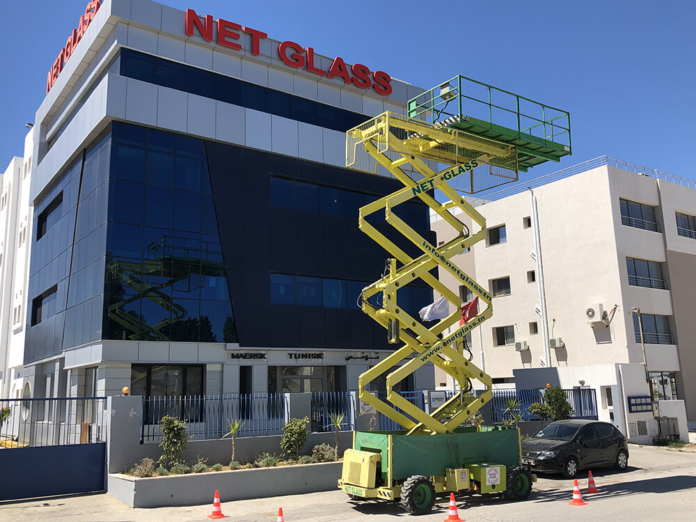 Une maîtrise de l’organisation et des méthodes modernes du travail, font de NET GLASS un partenaire de premier ordre non seulement pour le lavage des vitres, mais aussi pour les travaux en hauteur et la location de tous types de nacelles élévatrices.